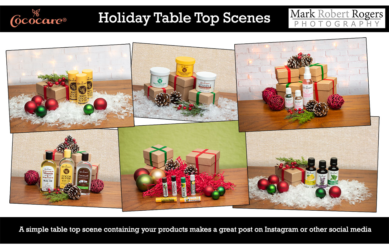 In order to make seasonal images for use on social media, I have also photographed table top scenes that include various products with other objects and decorations on a variety of backgrounds.
